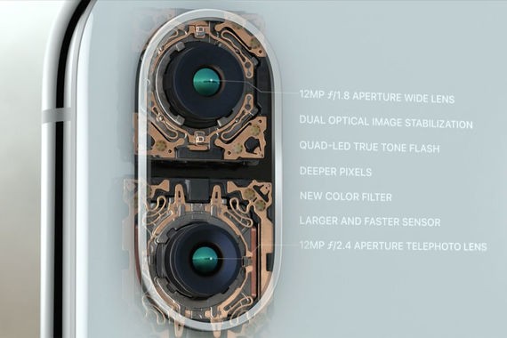 iPhone X-də 12 MP-lik iki kamera var. iPhone 8-dəki ilə eyni görünür. Fərqi isə Quad LED True Tona flash və iki qat daha yaxşı işıq verə bilməsidir.