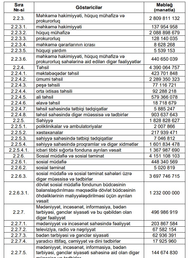Marja xəbər verir ki, Azərbaycan Respublikasının 2024-cü il dövlət büdcəsinin icrası gəlirlər 37 milyard 161 milyon 838,6 min manat, xərclər 37 milyard 713 milyon 661,1 min manat məbləğində olmaqla təsdiq edilib.