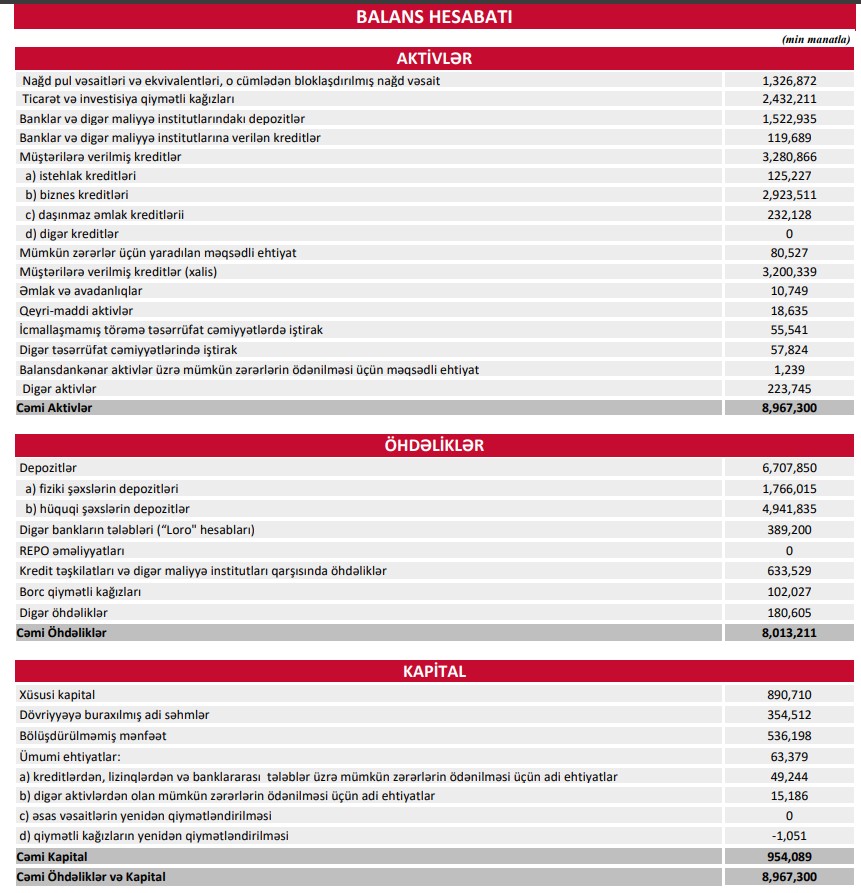 Marja.az bu barədə Bankın maliyyə hesabatlarına istinadən xəbər verir.
