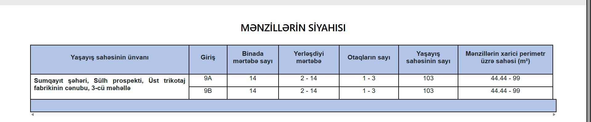 Vətəndaşlar təqdim olunan yaşayış sahələrinin siyahısı: