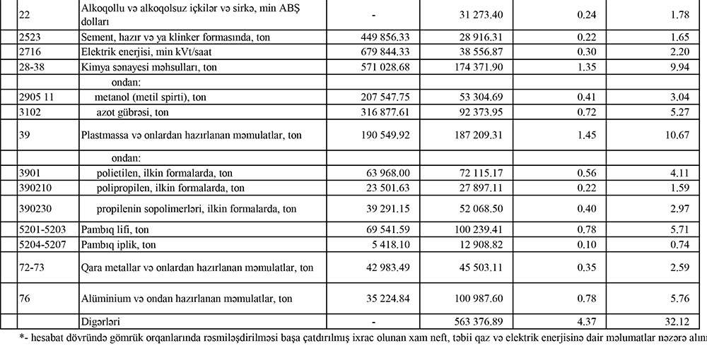Azərbaycanın ən çox ixrac və idxal etdiyi mallar - YENİ SİYAHI