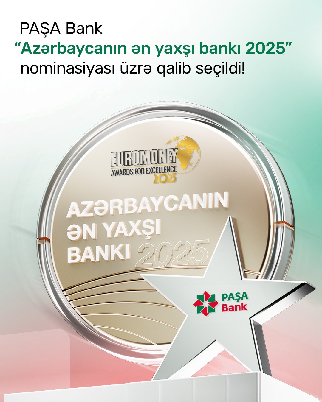 Ölkənin aparıcı korporativ bankı “PAŞA Bank” nüfuzlu beynəlxalq maliyyə nəşri “Euromoney” tərəfindən “Azərbaycanın ən yaxşı bankı 2025” nominasiyasında qalib elan olunub.