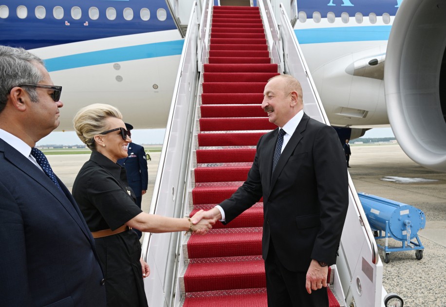 Dövlətimizin başçısını “Joint Base Andrews” hərbi hava bazasında rəsmi şəxslər qarşılayıblar.
