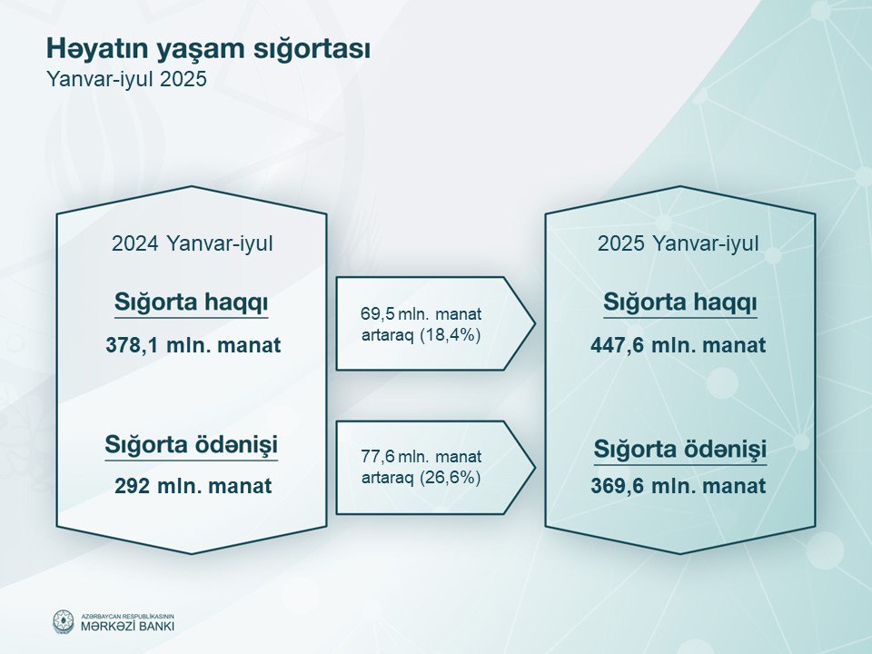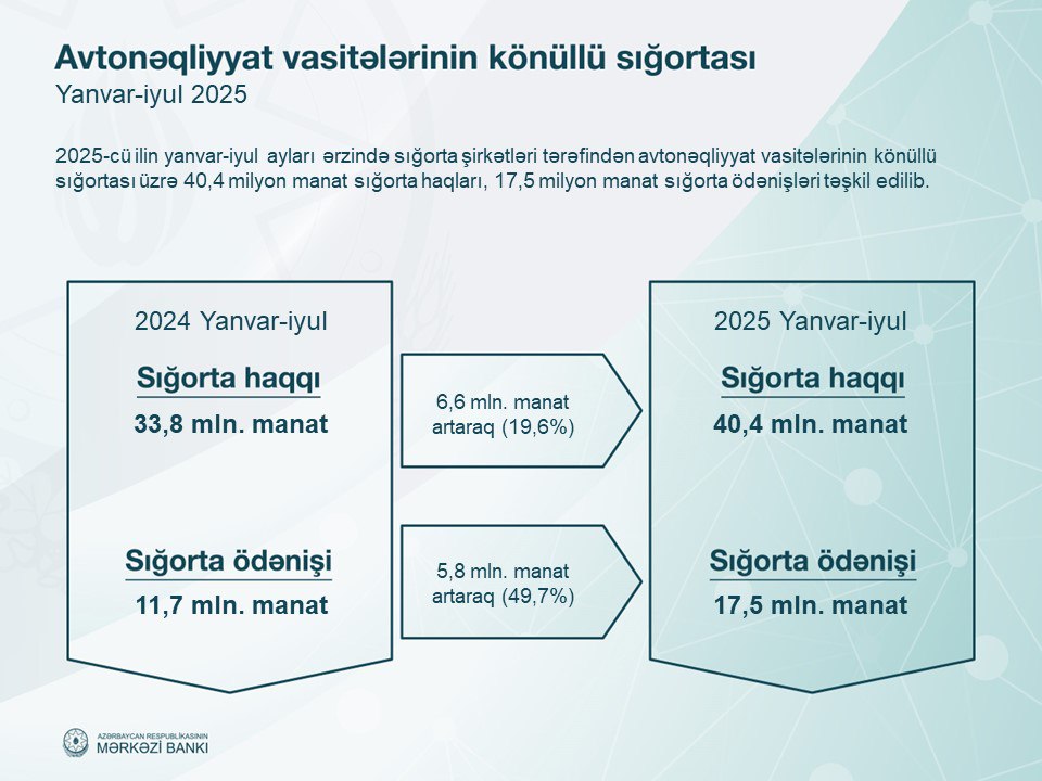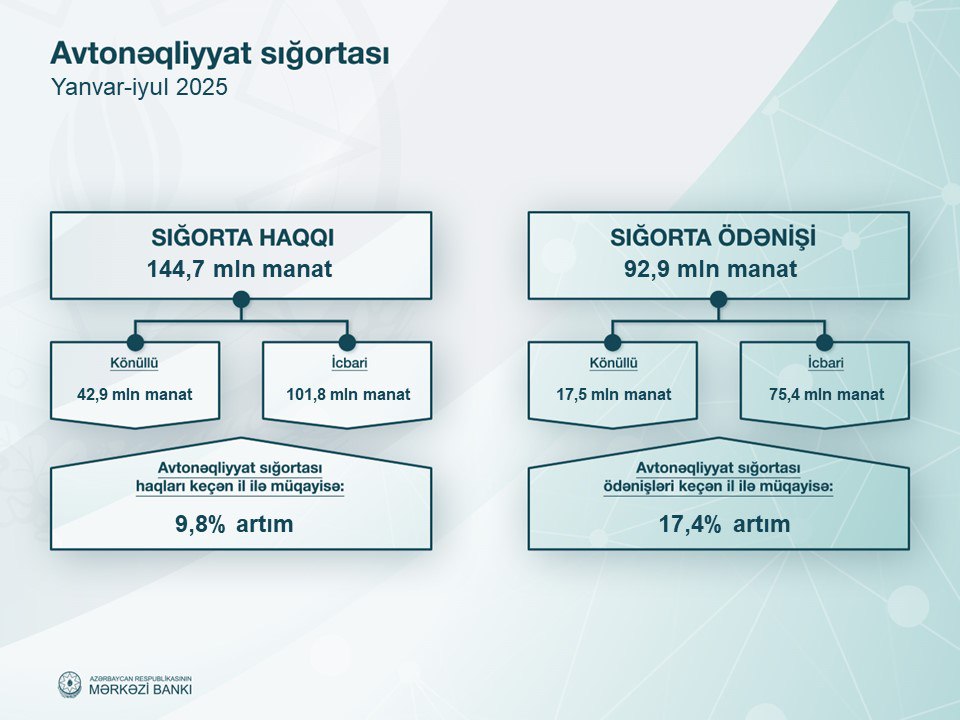 Azərbaycan Mərkəzi Bankı sığorta sektorunun 2025-ci ilin yanvar-iyul aylarına dair statistikasını açqılayıb.