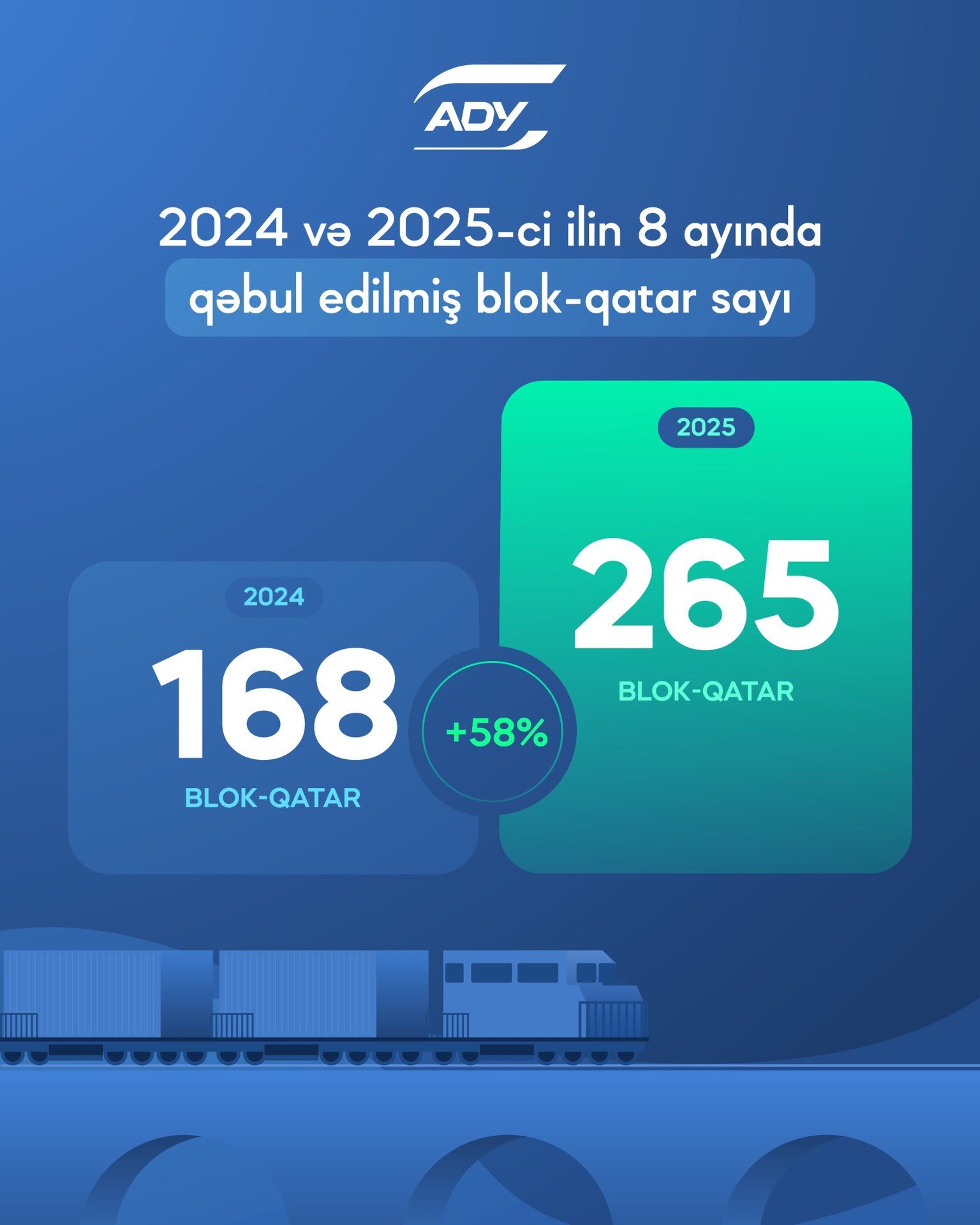AZCON Holding şirkətlərindən olan Azərbaycan Dəmir Yolları (ADY) tərəfindən 2025-ci ilin 8 ayında 265 blok qatar qəbul edilib.