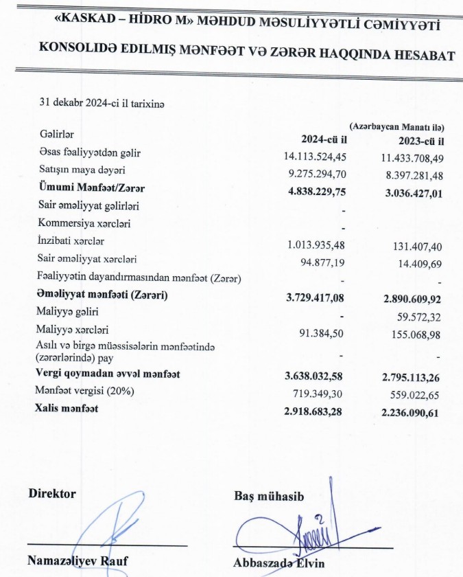 Su təsərrüfatı ürə keçirilən tenderlərdə tez-tez qalib elan edilən "Kaskad-Hidro M" MMC 2024-cü ili 2 milyon 919 min manat xalis mənfəət ilə başa vurub. Şirkət 20213-cü ili 2 milyon 236 min manat xalis mənfəət ilə bağlamışdı. Beləliklə, ötən il "Kaskad-Hidro M" şirkətinin xalis mənfəəti 683 min manat və ya 30% artıb.