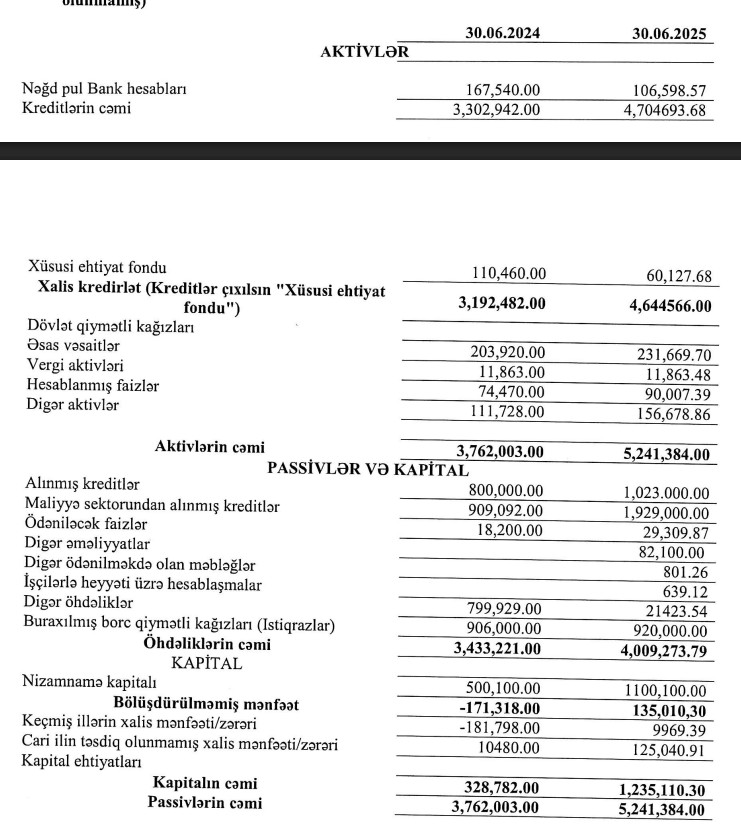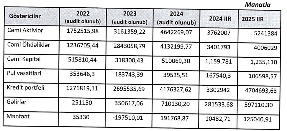 "Regional" BOKT-ın kredit portfeli 30 iyun 2024-cü il tarixindəki göstərici ilə müqayisədə 1 milyon 403 min manat və ya 42,5% artaraq 30 iyun 2025-ci il tarixində 4 milyon 705 min manata çatıb.