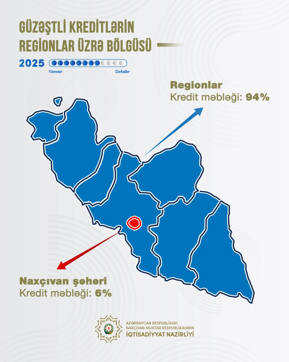 Naxçıvanda güzəştli kredit məbləğinin 94 faizi regionların payına düşüb