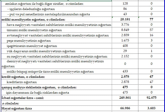 Siniflər üzrə sığorta haqları və sığorta ödənişləri - SİYAHI