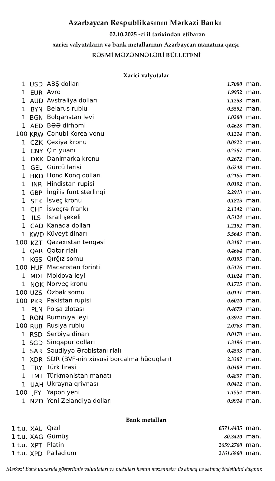 Dolların sabah üçün rəsmi məzənnəsi müəyyən olunub