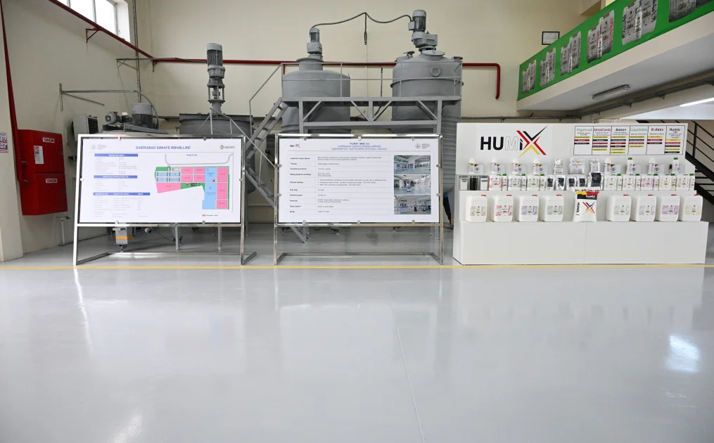 Azərbaycan Respublikasının Prezidenti İlham Əliyev oktyabrın 28-də Sabirabad Sənaye Məhəlləsində “Humix” MMC-nin aqrokimyəvi vasitələrin istehsalı müəssisəsinin fəaliyyəti ilə tanış olub.