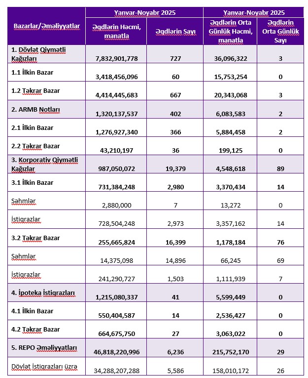 2025-ci ilin 11 ayı ərzində (yanvar-noyabr) Bakı Fond Birjasının (BFB) ticarət dövriyyəsinin həcmi 58 milyard 173 milyon 391 min manat təşkil edib.