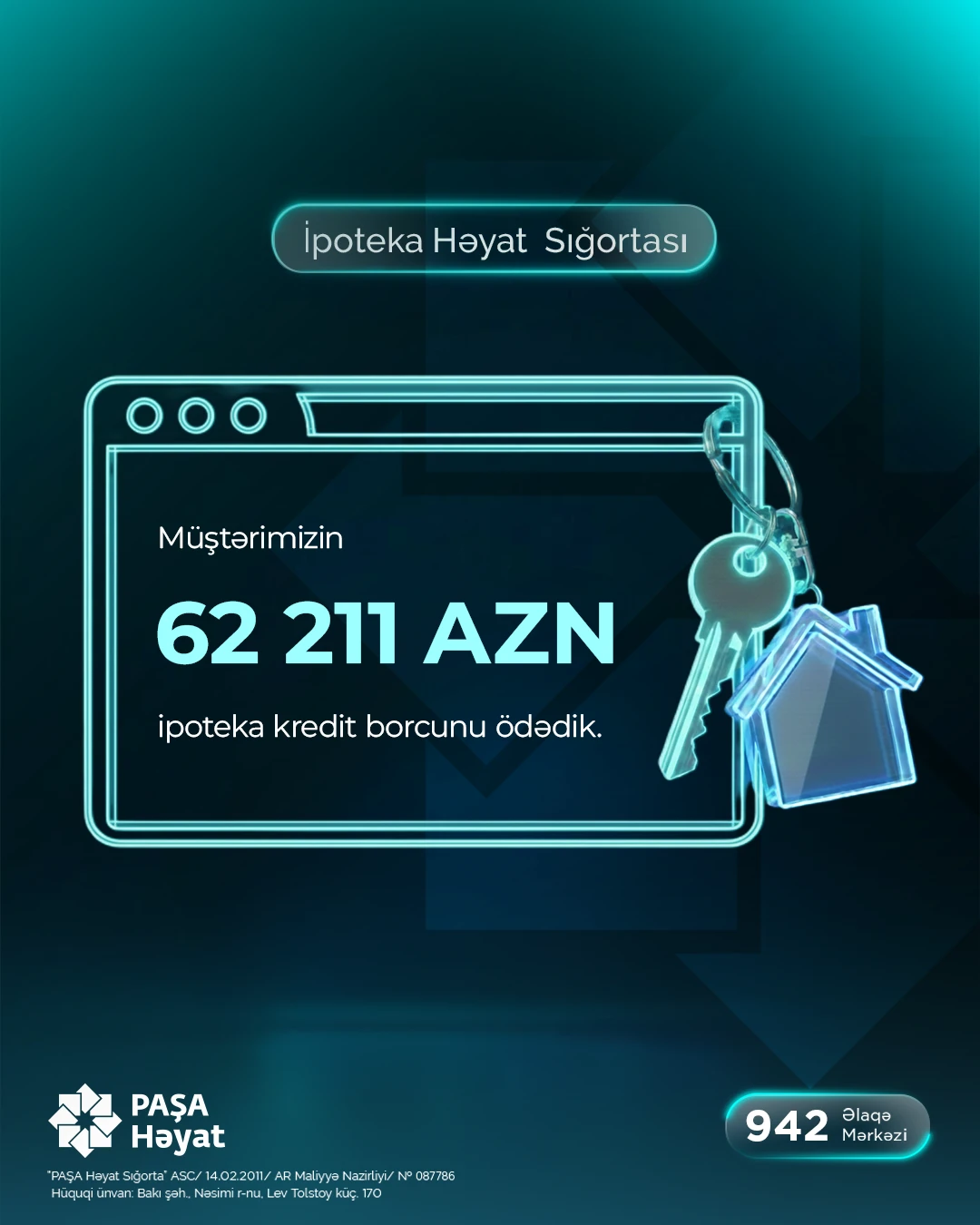 Şirkətlə sığorta olunan şəxs arasında bağlanmış sığorta müqaviləsinin müvafiq bəndinə əsasən, müştərinin 62 min 211 manat qalıq kredit borcu məbləği “PAŞA Həyat” tərəfindən aidiyyətı üzrə ödənilib.