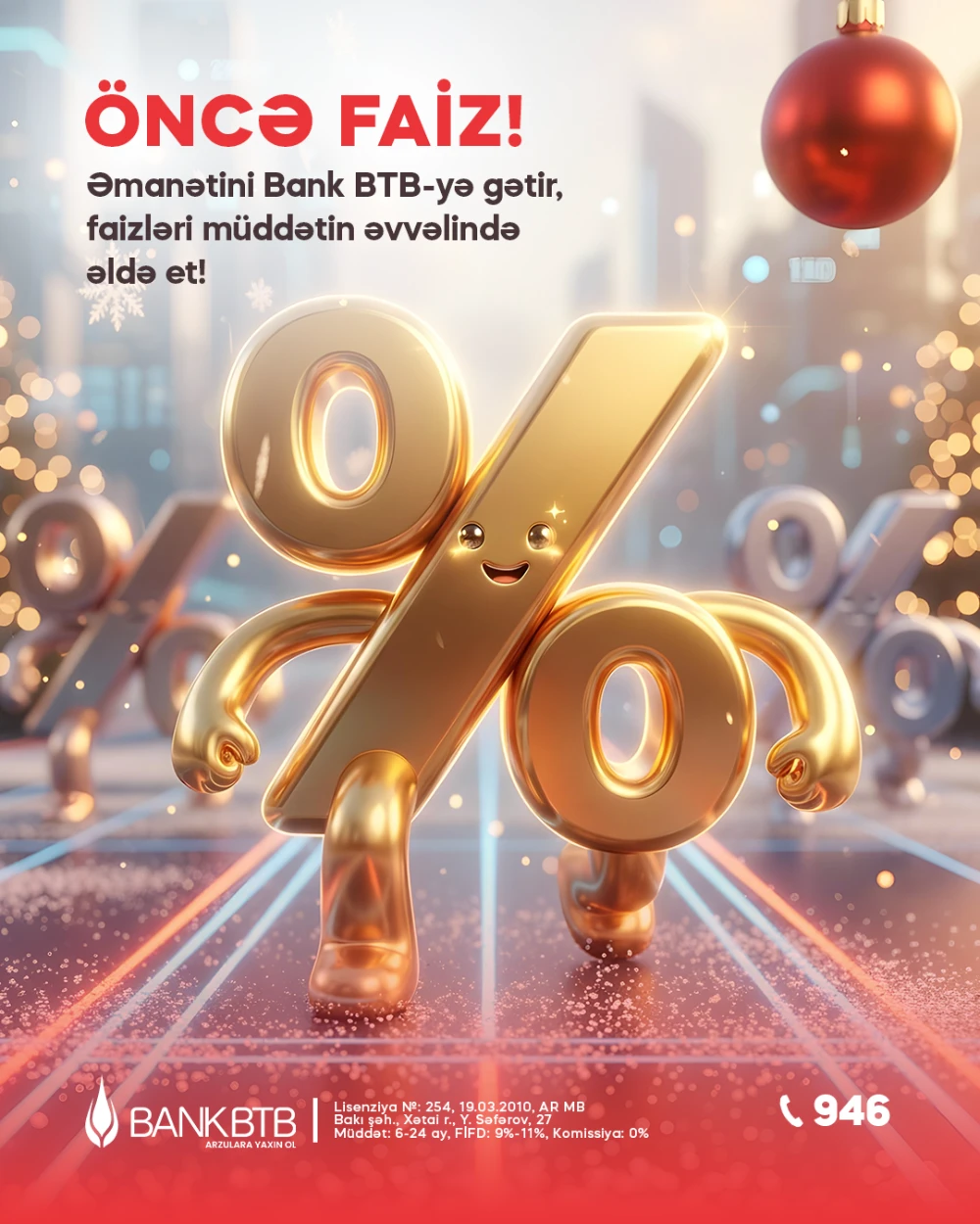 Bank “BTB”-də “Öncə faiz!” əmanət kampaniyası DAVAM EDİR!