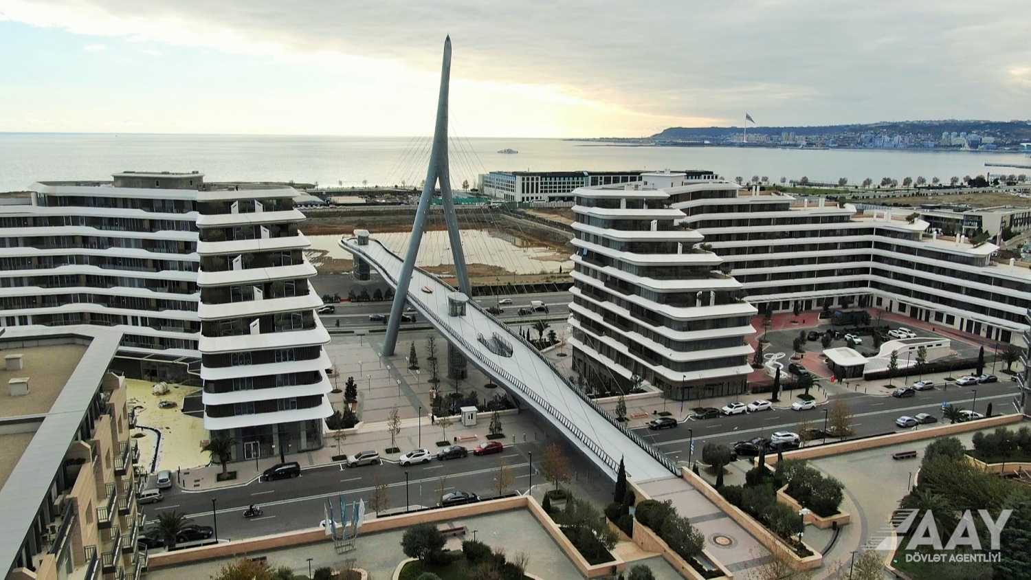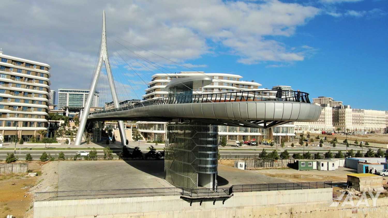 “Bakı Ağ Şəhər” yol infrastrukturunun yenidən qurulması layihəsi çərçivəsində 8 Noyabr prospekti üzərindən Bakı “Ağ Şəhər” layihəsinin Fəvvarələr meydanı parkını və Ağ Şəhər Bulvarını birləşdirən metal konstruksiyalı, müasir arxitekturaya malik yerüstü piyada körpüsü inşa edilib.