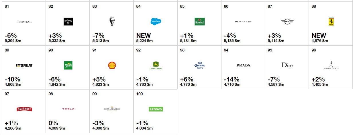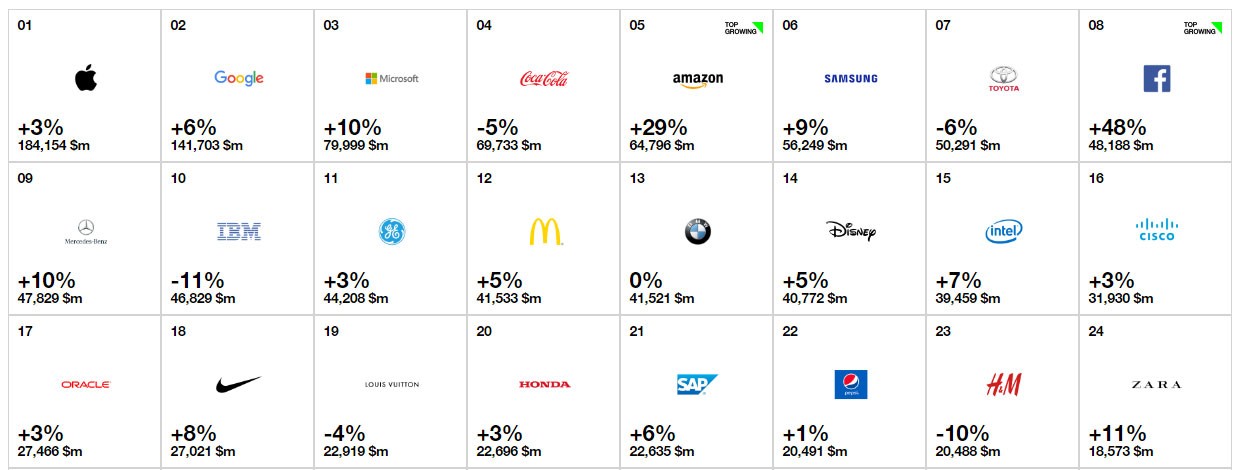 "Interbrand"ın ən dəyərli 100 marka siyahısı (http://interbrand.com/best-brands/best-global-brands/2017/ranking/).