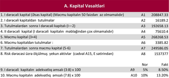 "Kapital Bank" ASC-nin məcmu kapitalı 249 milyon 586.05 min manatdır.