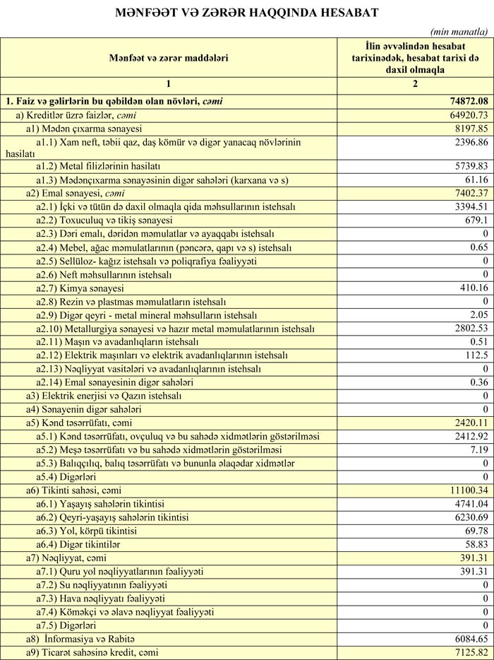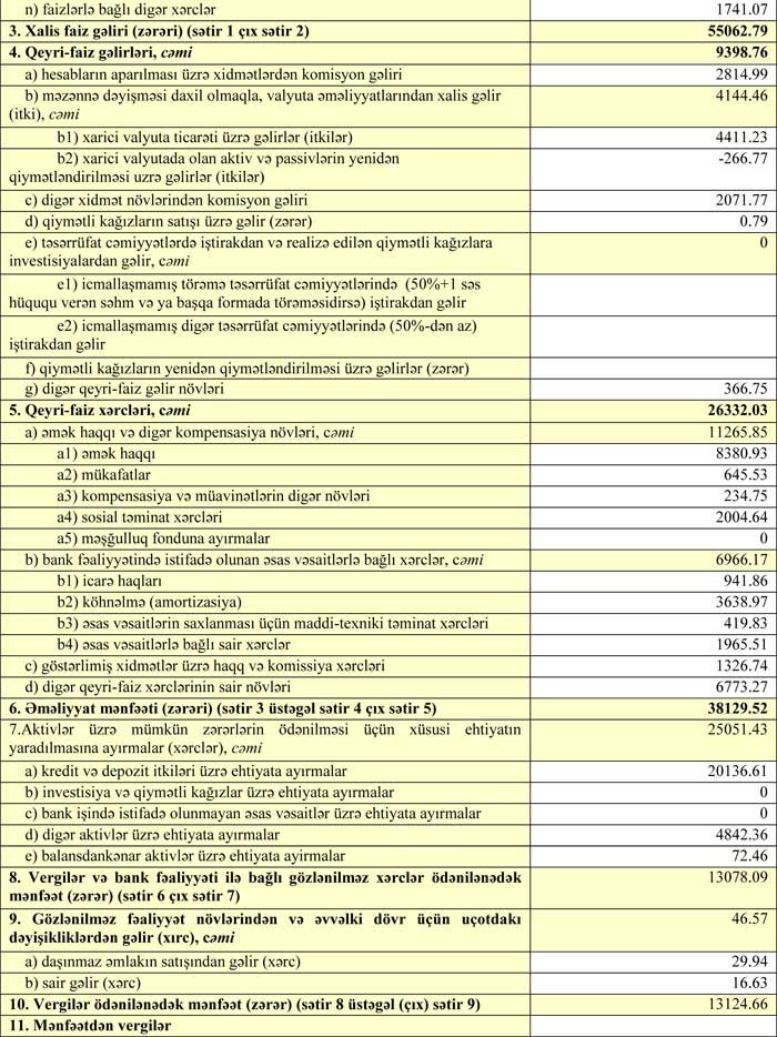 Azərbaycanın iri bankının gəlirləri və əməliyyat mənfəəti azalıb