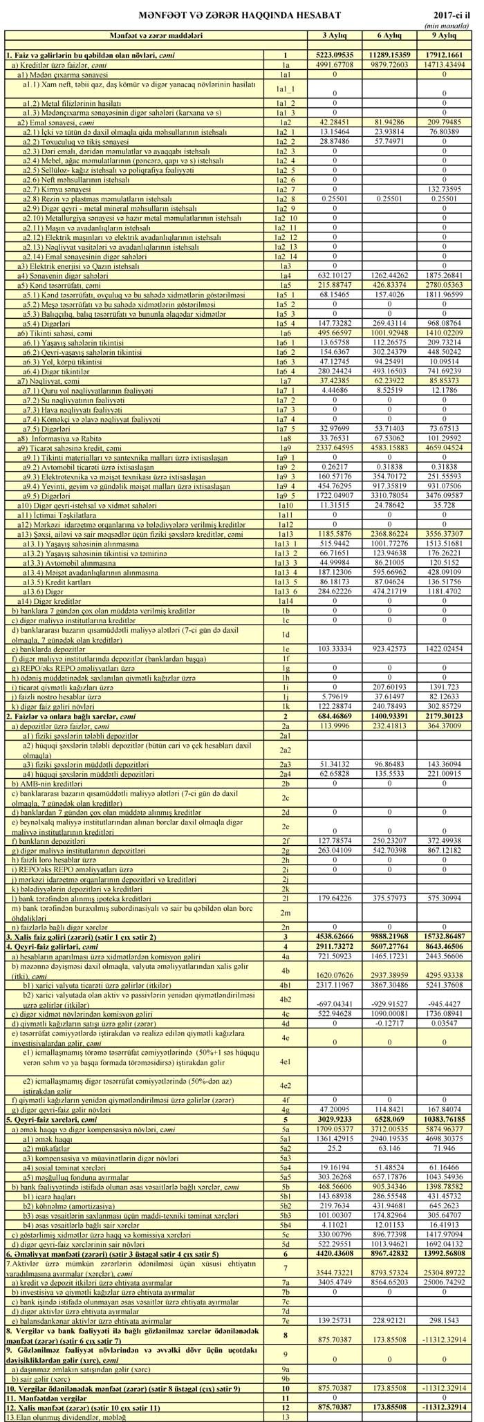 Çətin keçmiş 2015 və 2016-cı illərdə xalis mənfəət əldə etmiş “AFB Bank” ASC bu il zərərə keçib.
