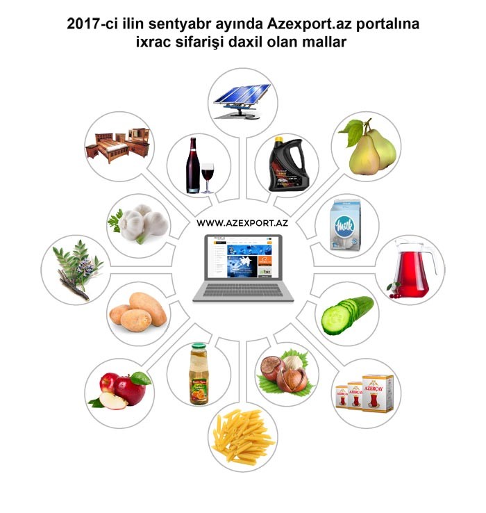 Azexport.az portalına daxil olan ixrac sifarişlərinin ilk beşliyində Rusiya (18.2%) ilə yanaşı Türkiyənin (6.7%), Ukraynanın (6.3%), Hindistanın (4.9%) və ABŞ-ın (4.6%) adı var. Sentyabr ayında diqqət çəkən məqamlardan biri Hindistandan daxil olan ixrac sifarişlərinin artmasıdır. Ötən ayda daxil olan sifarişləri məhsullar üzrə təhlil etdikdə məlum olur ki, sentyabr ayında ən çox ixrac sifarişi fındıq ləpəsinə, almaya, xiyara, kartofa, sarımsağa, şəraba və s. mallara daxil olub. Qırğızıstan Respublikasından pambıq yağına daxil olan sifariş həcmi böyük olduğu üçün yerli şirkətlər onu ancaq pambıq yığımı tam başa çatandan sonra qarşılaya biləcəklərini bildiriblər. Digər sifarişlər də Azexport.az portalının komandası tərəfində müvafiq yerli istehsalçılara yönəldilib.