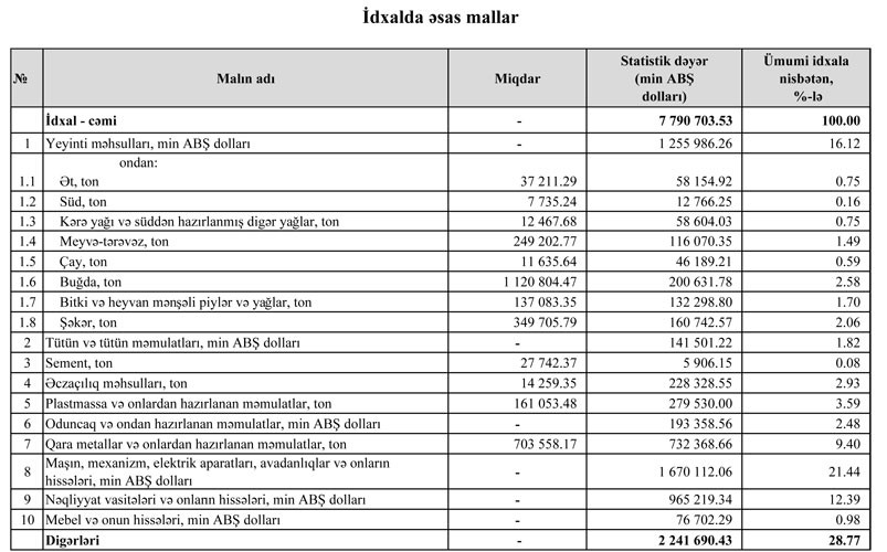 Azərbaycanın ən çox ixrac və idxal etdiyi mallar - SON RƏQƏMLƏR