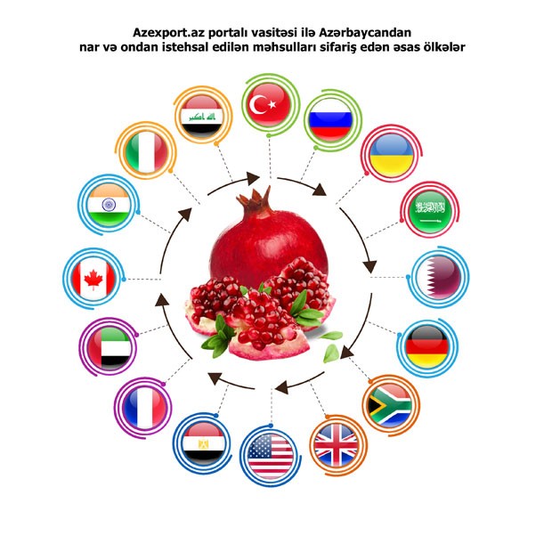 Daxil olan sifarişləri məhsullar üzrə təhlil etdikdə məlum olub ki, noyabr ayında ən çox ixrac sifarişləri aşağıdakı mallara daxil olub: alma, nar, nar şirəsi, nar konsentratı, toyuq yumurtası, çay, günəbaxan yağı, qarğıdalı yağı, pambıq yağı, meyvə cemi, fındıq ləpəsi, tütün, makaron, uşaq bezi, ipək xalça, şərab, qənnadı məhsulları soğan, şüşə qablar, mühərrik yağı, şəkər tozu, quru süd və s. Maraqlıdır ki, noyabr ayında nara və ondan istehsal olunan məhsullara sifarişlərin artdığı müşahidə olunub. ABŞ, İngiltərə, Cənubi Afrika Respublikası, Rusiya, Ukrayna, Avstraliya, Qətər və s. ölkələrdən bu məhsullara sifarişlər daxil olub.