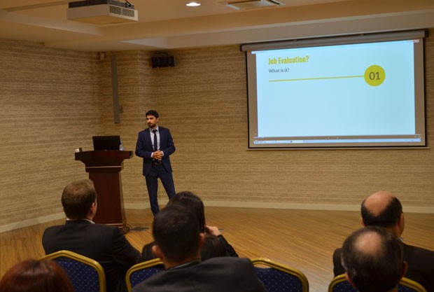 Görüş zamanı Nobel Oil şirkətinin İnsan Resursları üzrə koordinatoru Cəfər Yusifov şirkətin biznes ehtiyacları ilə uzlaşdırılmış və peşəkar inkişafı təmin etmək məqsədi ilə yaradılan vəzifə dərəcələnməsi və işin qiymətləndirilməsi sisteminin tətbiqi sahəsində şirkətin təcrübəsi barədə ətraflı məlumat təqdim etmişdir. Vəzifə dərəcələnməsi sistemi istedadların cəlb olunması və mükafat proqramını effektiv qaydada dəstəkləyərək işçilərin fəaliyyətinin qiymətləndirilməsi prosesi ilə əlaqələndirilir. Həmin prosesin həyata keçirilməsi həm Nobel Oil şirkətini, həm də törəmə şirkətləri əhatə edən SAP ERP sistemi vasitəsilə idarə olunur ki, bu da bütün şirkətlərdə ümumi əlaqələndirmə üçün vahid vasitə yaradır. Vəzifə dərəcələnməsi sisteminin tətbiqi daha funksional təşkilati strukturun və ədalətli ödəniş sisteminin formalaşdırılmasına töhfə verməklə yanaşı, həm də biznes əməliyyatlarının ehtiyaclarını qarşılamağa kömək edir.