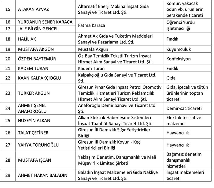 Nümayəndə heyətinə qatılacaq iş adamlarının siyahısı.