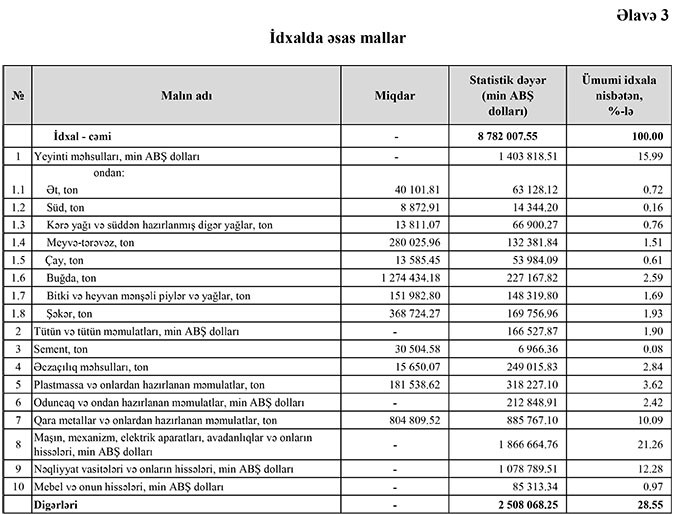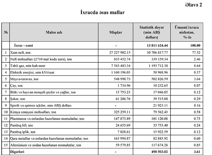 Ötən il Azərbaycanın ən çox ixrac və idxal etdiyi mallar