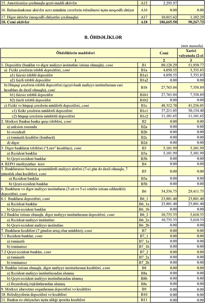 Bankın depozit portfeli 2016-cı ilin sonunda 37 milyon 924 min manat ikən, 2017-ci ilin sonunda 80 milyon 128 min manata çatıb. O cümlədən, əhalinin əmanətləri 17 milyon 158 min manatdan 37 milyon 211 min manat qalxıb.