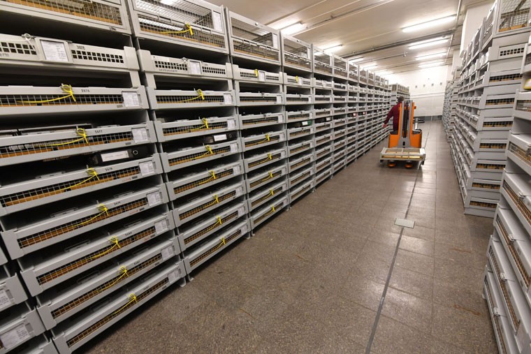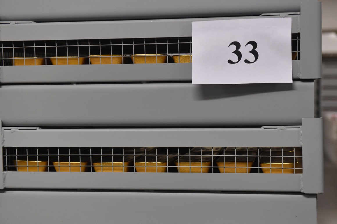 Anbarın böyük olması diqqəi cəlb edir və burada nizami şəkildə qəfəsli konteynerlər düzülüb. Anbarda bir kvdratmetrə 1 ton qızıl yığılıb.
