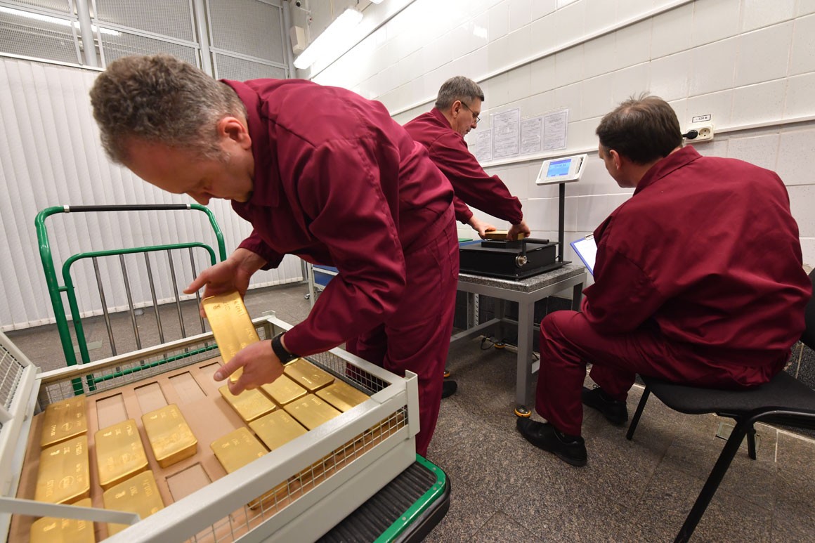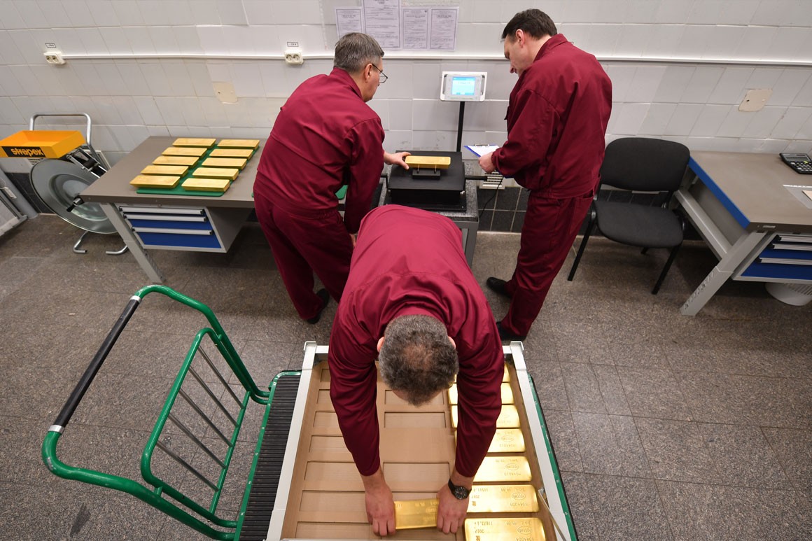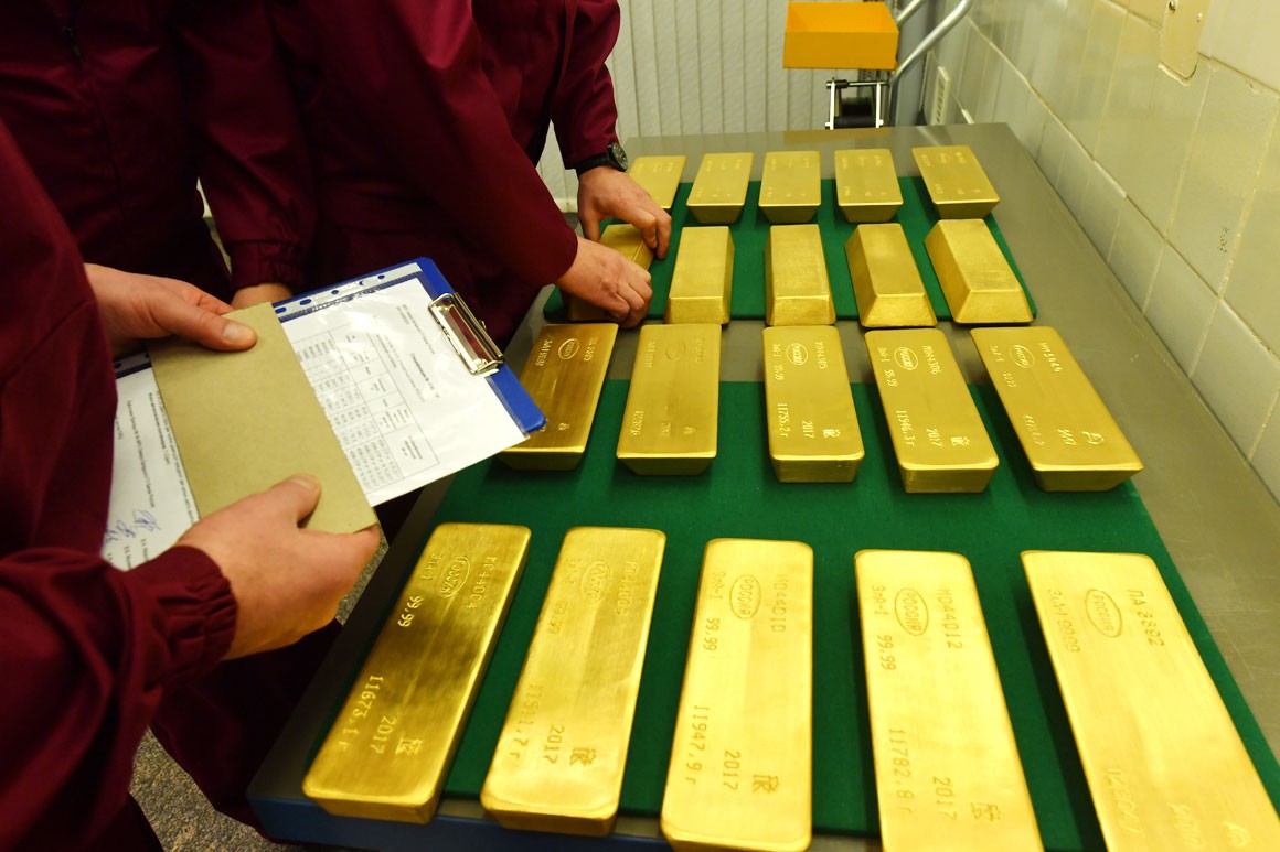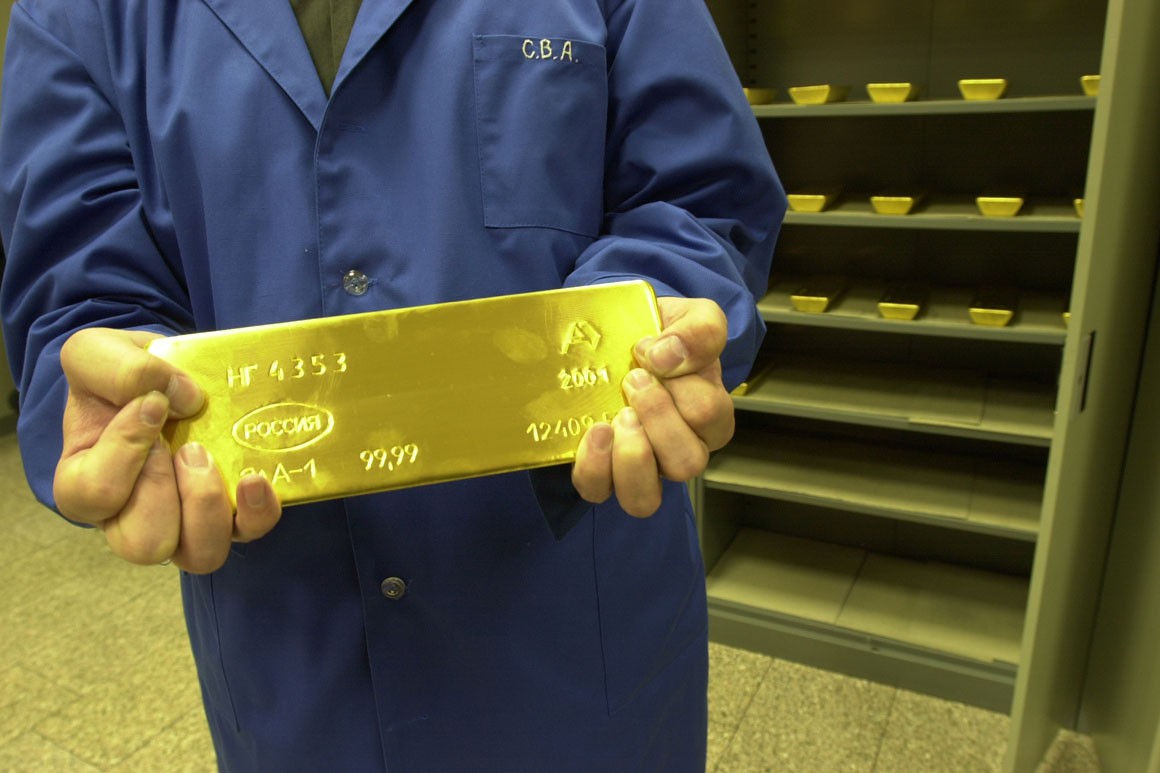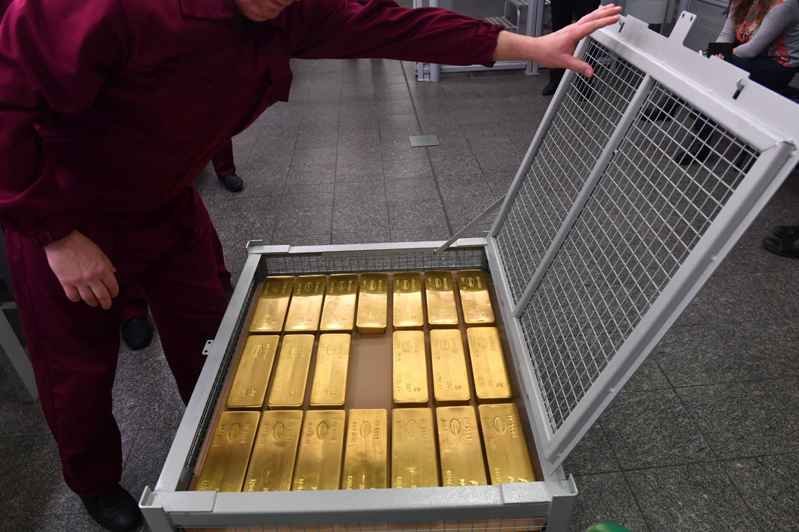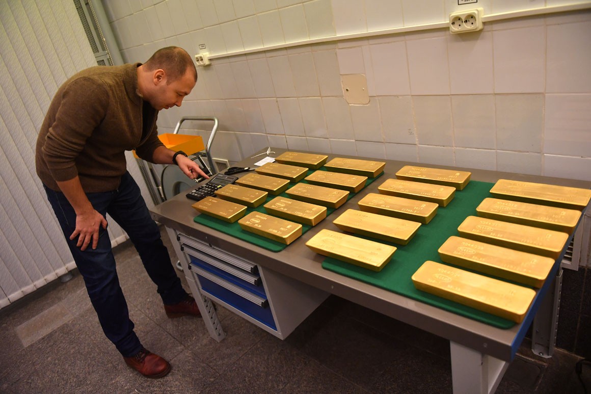 Rusiya Mərkəzi Bankının beynəlxalq ehtiyatlarında qızılın miqdarı hazırda 1800 tondan çoxdur. Rusiya qızıl ehtiyatlarına görə dünyada altıncı yerdədir. 10 il əvvəl Rusiyanın beynəlxalq qızıl ehtiyatlarındakı payı 3% idi. Ancaq son illərdə Mərkəzi Bankın ehtiyatlarını artırması ilə bu nisbət 17%-ə çatıb.