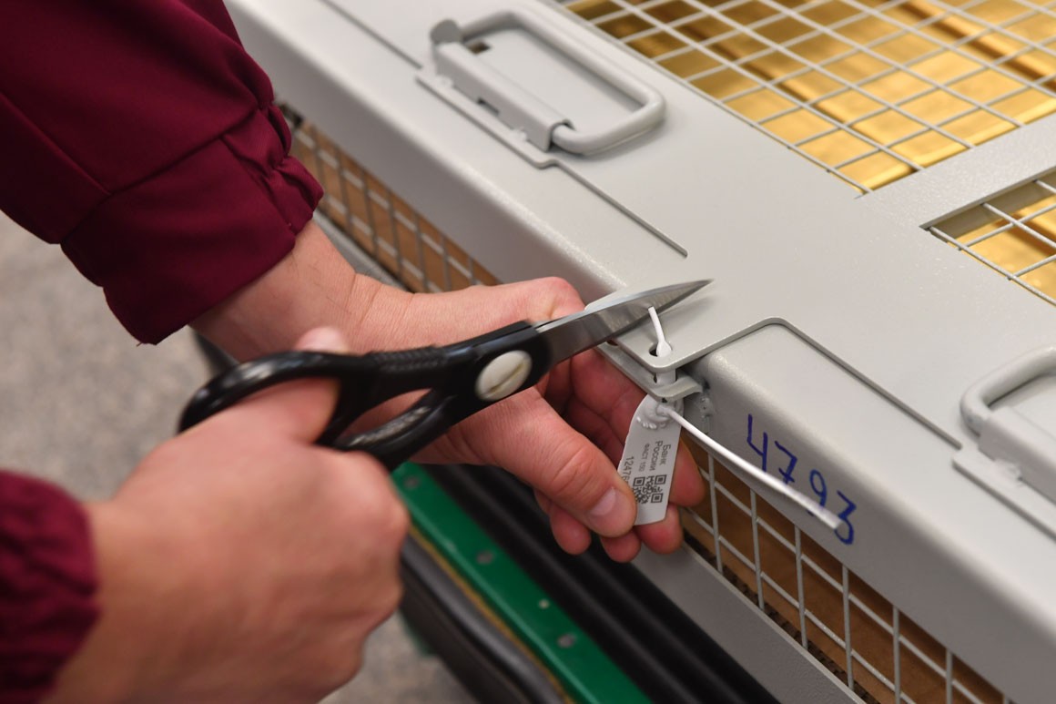 Külçələr qəfəsli konteynerlərə diqqətli bir şəkildə yerləşdirilir. Hər birinin içərisinə 20 külçə qoyulan konteynerlər daha sonra möhürlənir.