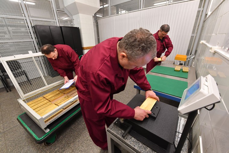 İşçilər külçələrlə çox diqqətli davranırar. Çünki külçələrə zərər verilməsinə yol verilmir. Qoruyucu qəfəsin içindəki qızılın mükəmməl vəziyyətdə olması lazımdır.