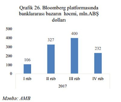 Hesabat ilində Mərkəzi Bankda valyuta hərraclarının keçirilmədiyi günlərdə də banklararası valyuta bazarının Bloomberg platformasında təşkil edilən seqmenti normal fəaliyyət göstərmişdir. Dövr ərzində banklararası valyuta bazarının bu seqmentində hərracdan kənar alqı- satqı əməliyyatlarının həcmi 1 milyard 65 milyon ABŞ dolları olmuşdur.