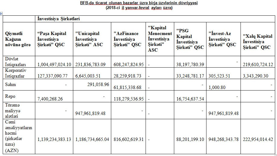 İnvestisiya şirkətlərinin dövriyyələri açıqlandı