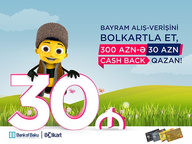 15 - 25 mart 2018-ci il tarixlərini əhatə edən kampaniya çərçivəsində Bolkart kredit kart sahibləri nağdsız formada istənilən mağazada 300 AZN və daha çox məbləğdə etdikləri alış-verişə görə 30 AZN həcmində cash-back qazanacaqlar.