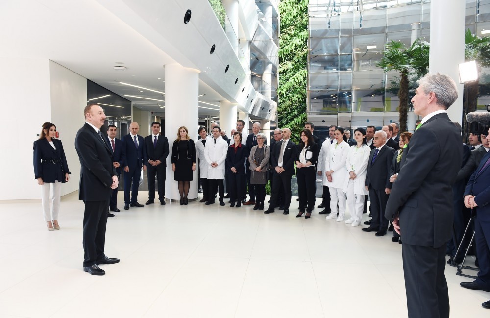 Belə böyük xəstəxananın yaradılması, həmçinin ölkəmizin sürətli inkişafını əks etdirir. Biz sosial sahəyə, xüsusilə səhiyyə sahəsinə çox böyük diqqət ayırırıq. Son illər ərzində biz yüzlərlə yeni xəstəxana və tibb mərkəzini tamamilə yenidən qurmağa və tikməyə müvəffəq olmuşuq. Lakin bu, əlbəttə ki, nadir tibb mərkəzidir.