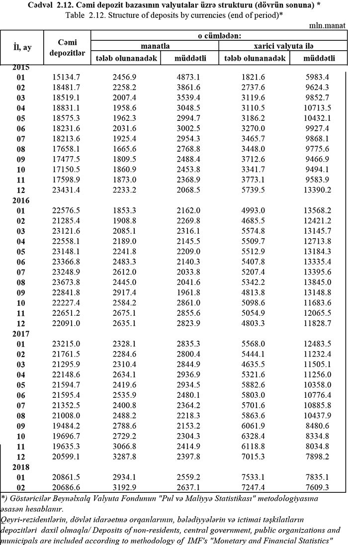 2018-ci ilin Fevral ayının sonuna banklarda cəmi depozitlər 20 milyard 686.6 milyon manat təşkil edib.