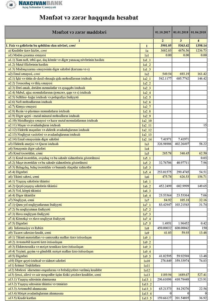 “Marja” Bankın mənfəət - zərər hesabatına istinadən xəbər verir ki, cari ilin yanvar-mart dövründə Bankın faiz gəlirləri 1 milyon 398 min manat, qeyri-faiz gəlirləri 662.6 min manat təşkil edib. Xərclər çıxıldıqdan sonra “Naxçıvanbank” 1 milyon 201 min manat əməliyyat mənfəəti əldə edib. Əməliyyat mənfəətinin 348.62 min manatı aktivlər üzrə mümkün zərərlərin ödənilməsi üçün xüsusi ehtiyatın yaradılmasına ayırılıb.