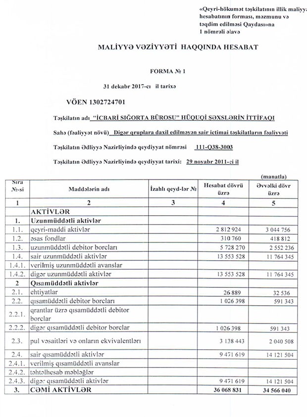 İcbari Sığorta Bürosu ötən il aktivlərini artırıb.