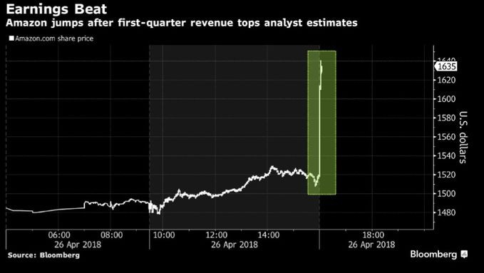 Satışların proqnozdan yüksək olması ilə əlaqədar Amazon-un səhmləri kəskin bahalaşıb və əməliyyat gününü 7.3 faiz artımla başa vurub. Şrkətin səhminin dəyəri 1627 dollara qalxıb.