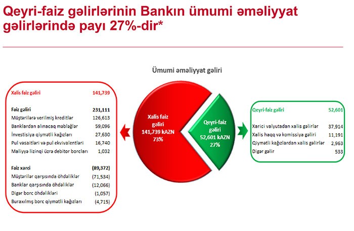 Qeyri-faiz gəlirləri 36% azalıb. Bunun səbəbi valyuta məzənnələrindəki sabitləşmə ilə əlaqədar olaraq valyuta əməliyyatlarından gəlirlərin azalmasıdır.