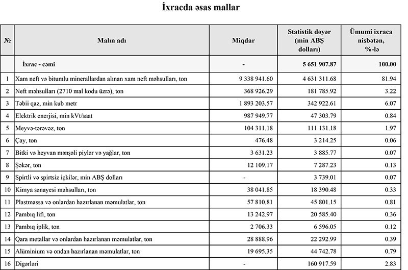 Azərbaycanın ən çox idxal və ixrac etdiyi mallar