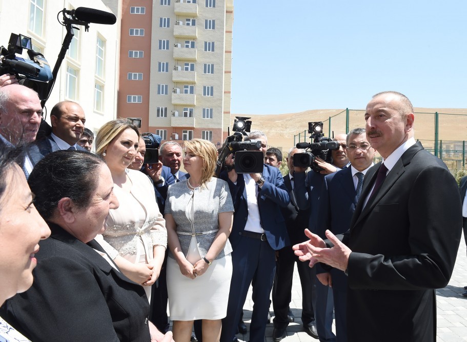 Məktəblə tanışlıqdan sonra dövlətimizin başçısı məcburi köçkünlərlə görüşdü.