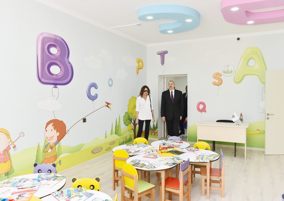 Sonra Prezident İlham Əliyev və birinci xanım Mehriban Əliyeva kompleksin ərazisində inşa edilmiş 344 nömrəli körpələr evi-uşaq bağçasında yaradılan şəraitlə tanış oldular.
