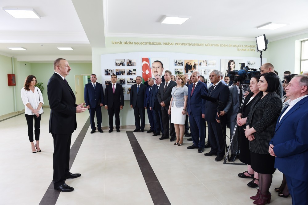 “Bu gün açılışına toplaşdığımız kompleksin bütün infrastrukturu yaradılıb. Elektrik, su, qaz xətləri, bütün infrastruktur məsələləri həll olunub, yollar çəkilib, həm qəsəbədaxili, həm də magistral yola çıxış yolu salınıbdır. Doqquzmərtəbəli on bir yaşayış binası tikilib, gözəl şərait yaradılıb. Mən indi mənzillərlə tanış olmuşam. Mənzillərin ümumi sahəsi 73 min kvadratmetrdir. Gözəl məktəb - 624 şagird yerlik, uşaq bağçası - 220 nəfərlik, tibb məntəqəsi, poçt məntəqəsi, polis məntəqəsi, yəni, yaşamaq üçün bütün şərait yaradılıb və ən yüksək səviyyədə. Gözəl ictimai zonalar yaradılıb, ağaclar əkilib, parklar salınıb. Hesab edirəm ki, bu, köçkün şəhərciklərinin arasında öz gözəlliyi və şəraiti ilə seçilən mərkəzlərdən biridir.