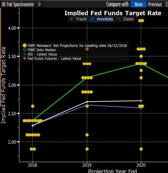 Mart ayındakı faiz qərarından sonra 6 Fed rəsmisi faizin 3 dəfə, 6 rəsmi isə 4 dəfə artırılmasının tərəfdarı idi. İyun ayı toplantısından sonra 7 səlahiyyətli faizin 4 dəfə artırılmasını dəstəkləyir, 5 rəsmi isə 3 dəfə faiz artırılmasının lazım olduğunu hesab edir.