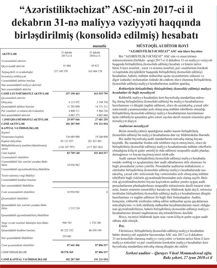 “Marja” xəbər verir ki, “Azəristiliktəchizat” maliyyə hesabatını “Mənfəət və zərər” hesabatı olmadan dərc etdirib.