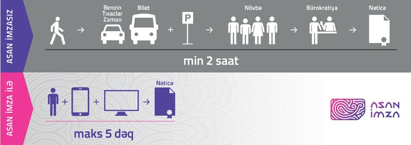 -Azərbaycan “Asan İmza” mobil identitet və imzanın buraxılışı üzrə layihənin reallaşdırıldığı dünyada ilk 10 ölkənin siyahısına daxil edilmişdir. Regionda Ukrayna, Gürcüstan, Özbəkistan, Qırğızıstan, Əfqanıstanın daxil olduğu bir sıra ölkələrdə ən təhlükəsiz, istifadədə asan və İnternetə məhdud çıxışı olan istifadəçilər üçün əlyetərlilik baxımından bu texnologiyanın tətbiq edilməsini planlaşdırılır. Bununla yanaşı “Asan İmza” bazar rəqabətinin qaydalarını gözləyərək Azərbaycanda Elektron Rəqəmsal İmza (e-imza) ilə bərabər şəkildə qüvvədədir. Bu isə istifadəçilərə üstün variant seçimində dayanmağa imkan verir.